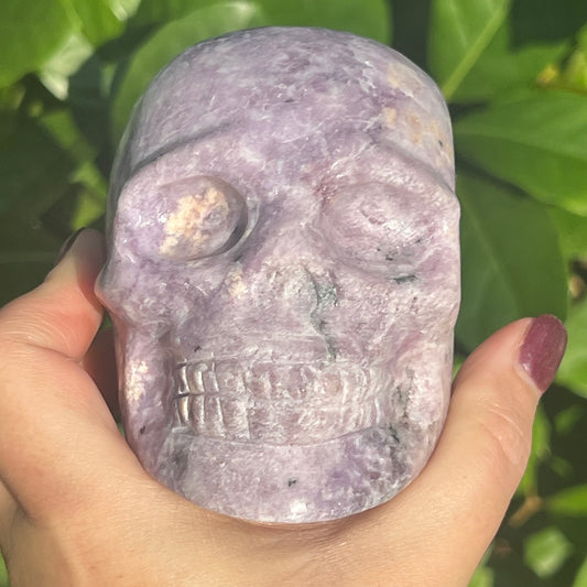 Lepidolite Crystal Skull Carving 2lbs Firm