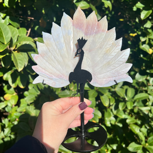 Rare Pink Calcite Peacock Crystal Wings Carving