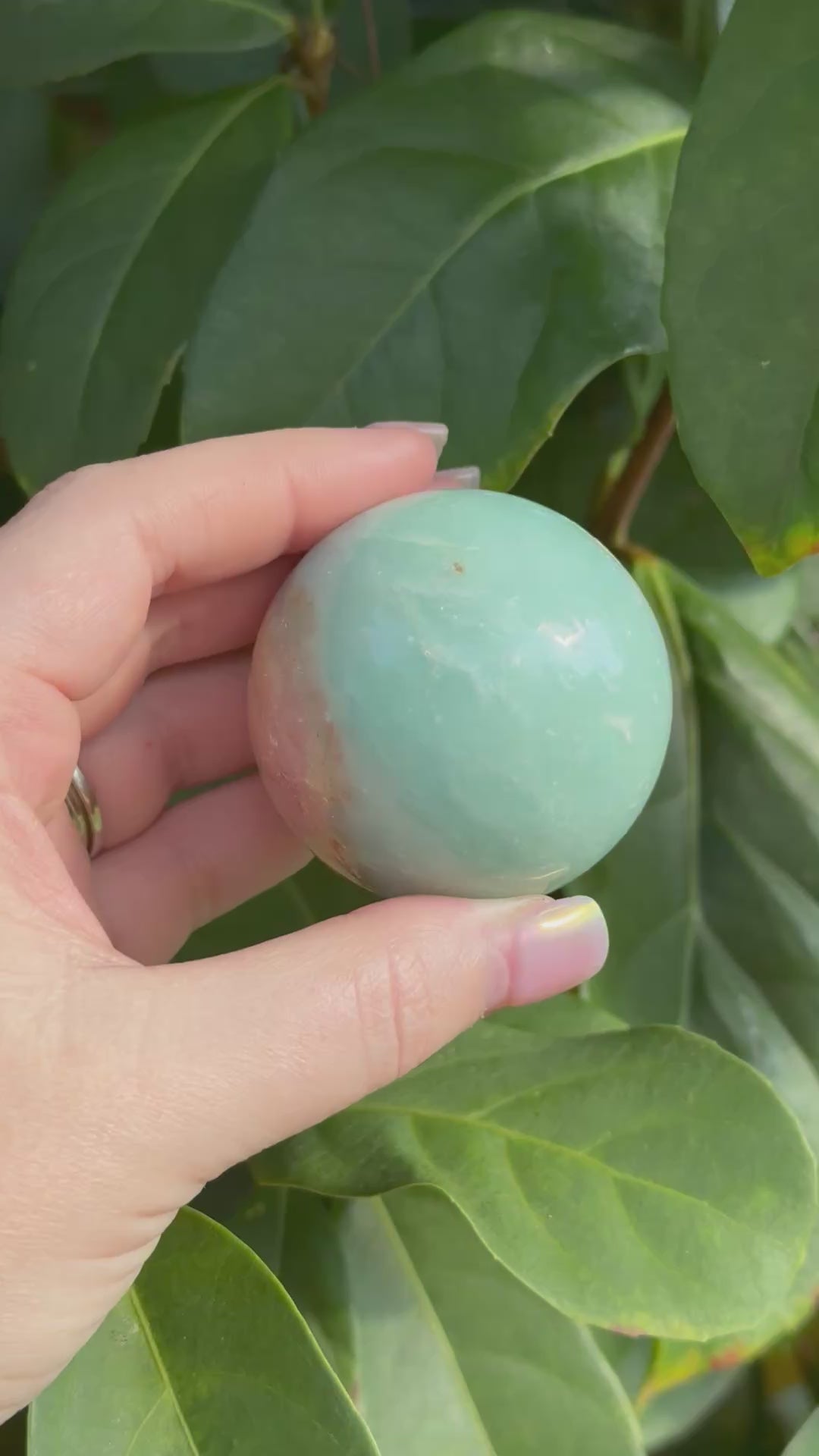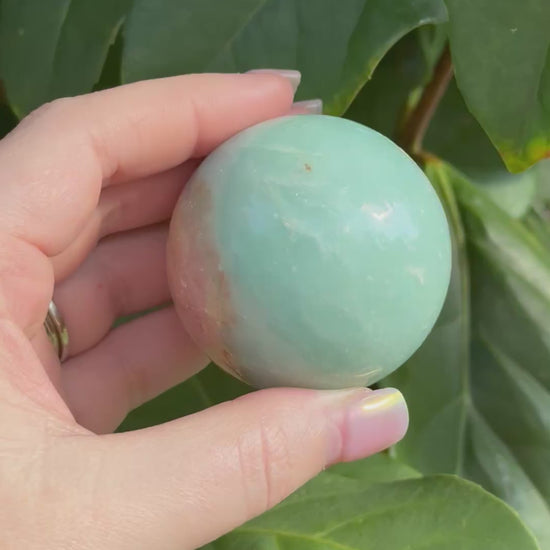 This Caribbean Calcite sphere is a stunning gift from Gaia, known for its soft ocean-blue tones blended with warm sandy and peachy hues. Polished into a smooth sphere, it highlights the crystalâs natural patterns and dreamy, coastal feelâbeautiful to display and meaningful to hold.