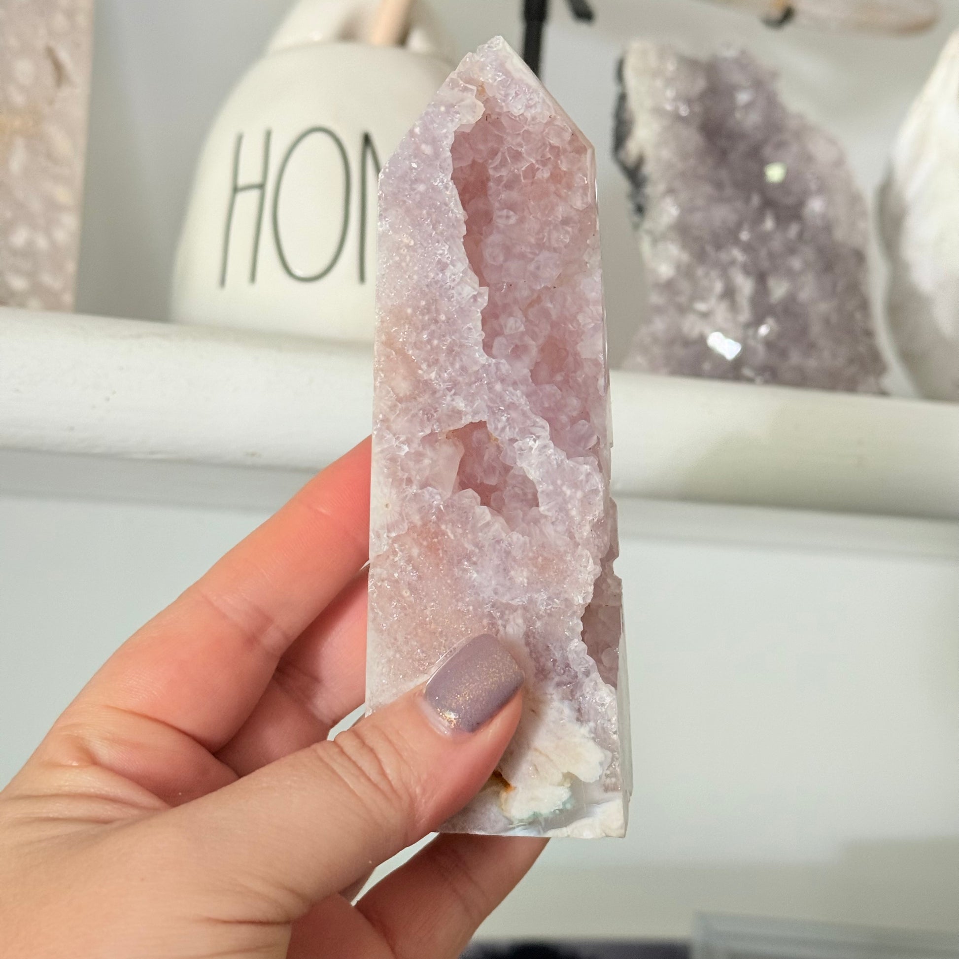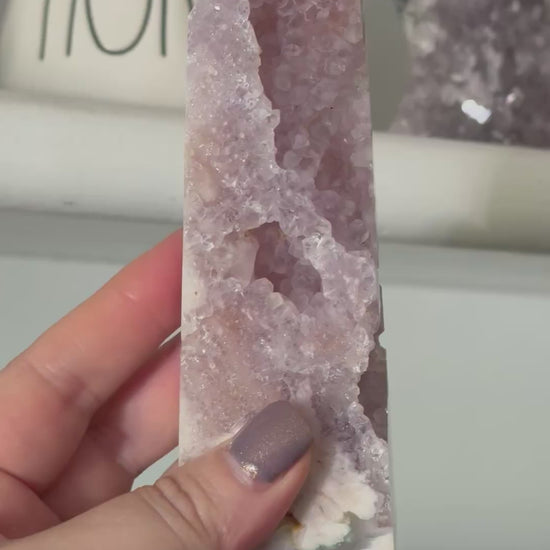 Druzy Pink Amethyst & Flower Agate Crystal Tower