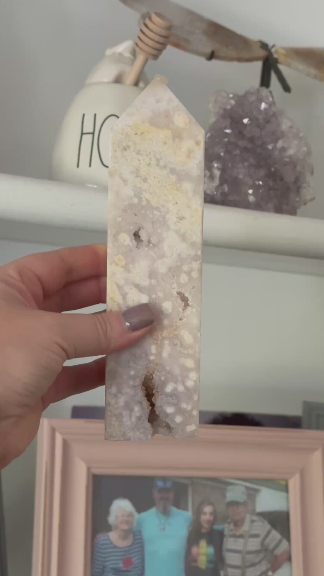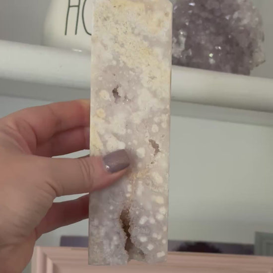 Druzy Pink Amethyst & Flower Agate Crystal Tower