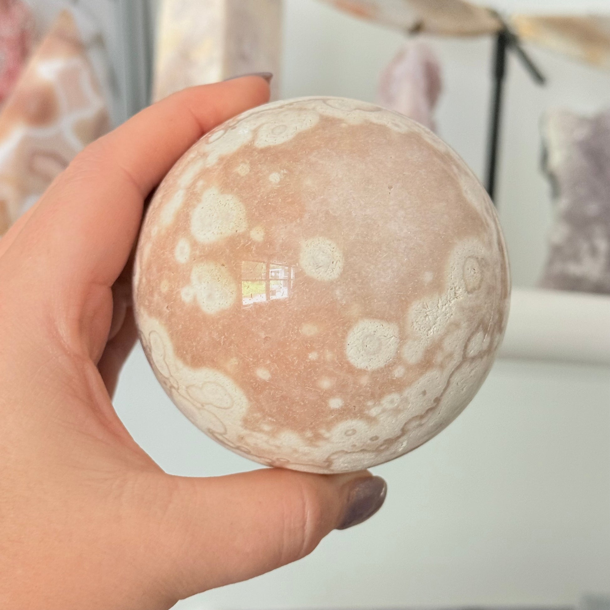 This crystal is admired for its peaceful, grounding nature. Flower Agate’s nurturing stability blends seamlessly with Pink Amethyst’s soft energy, offering a supportive companion during times of change or self-discovery.