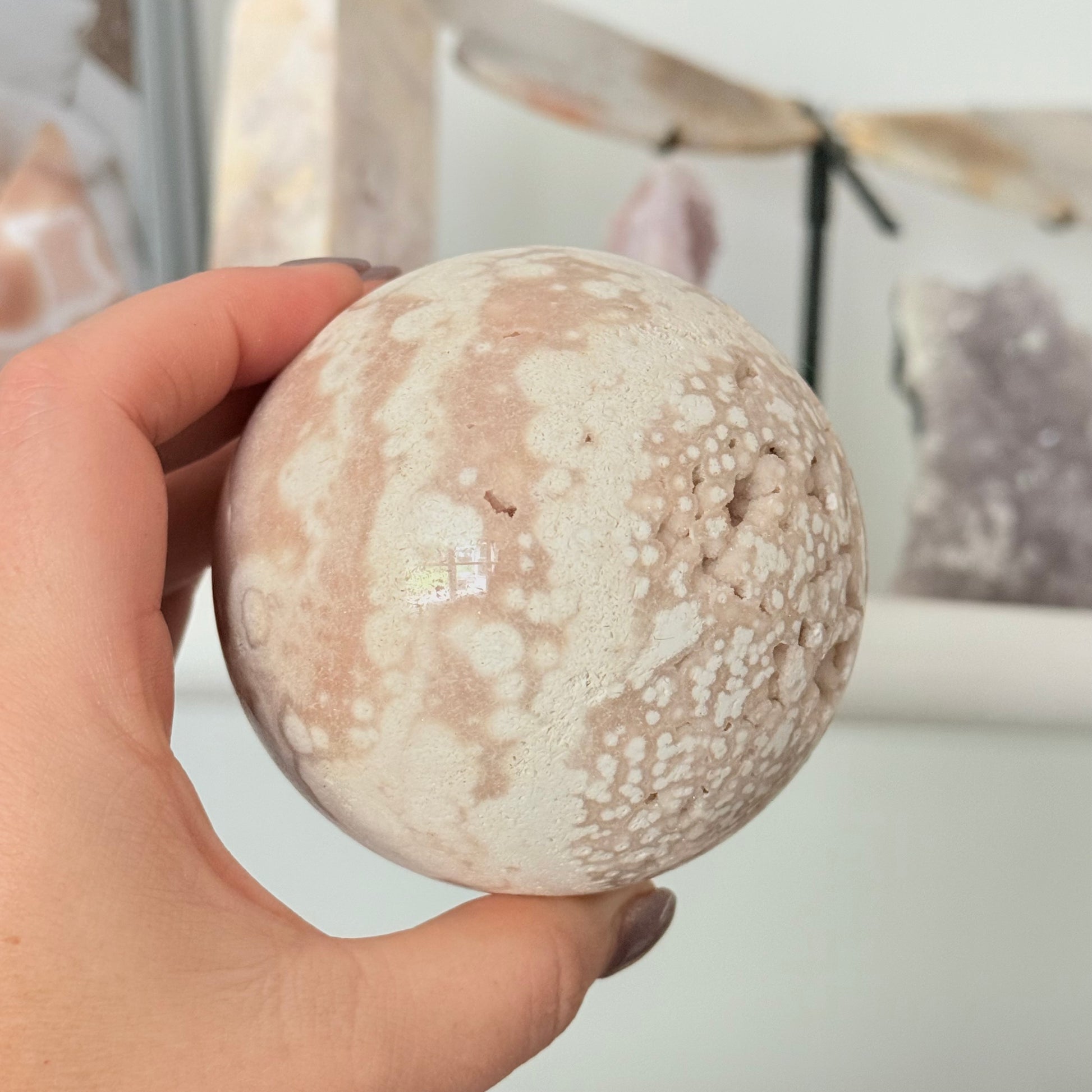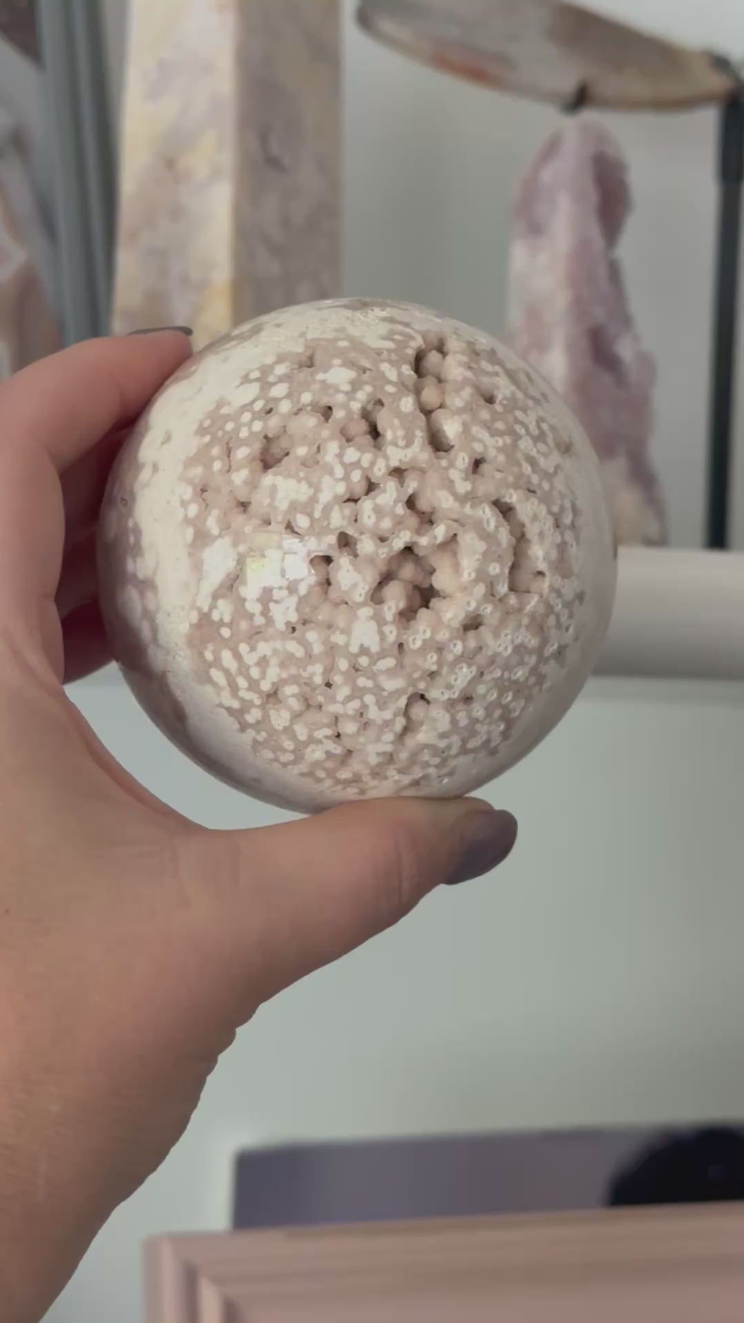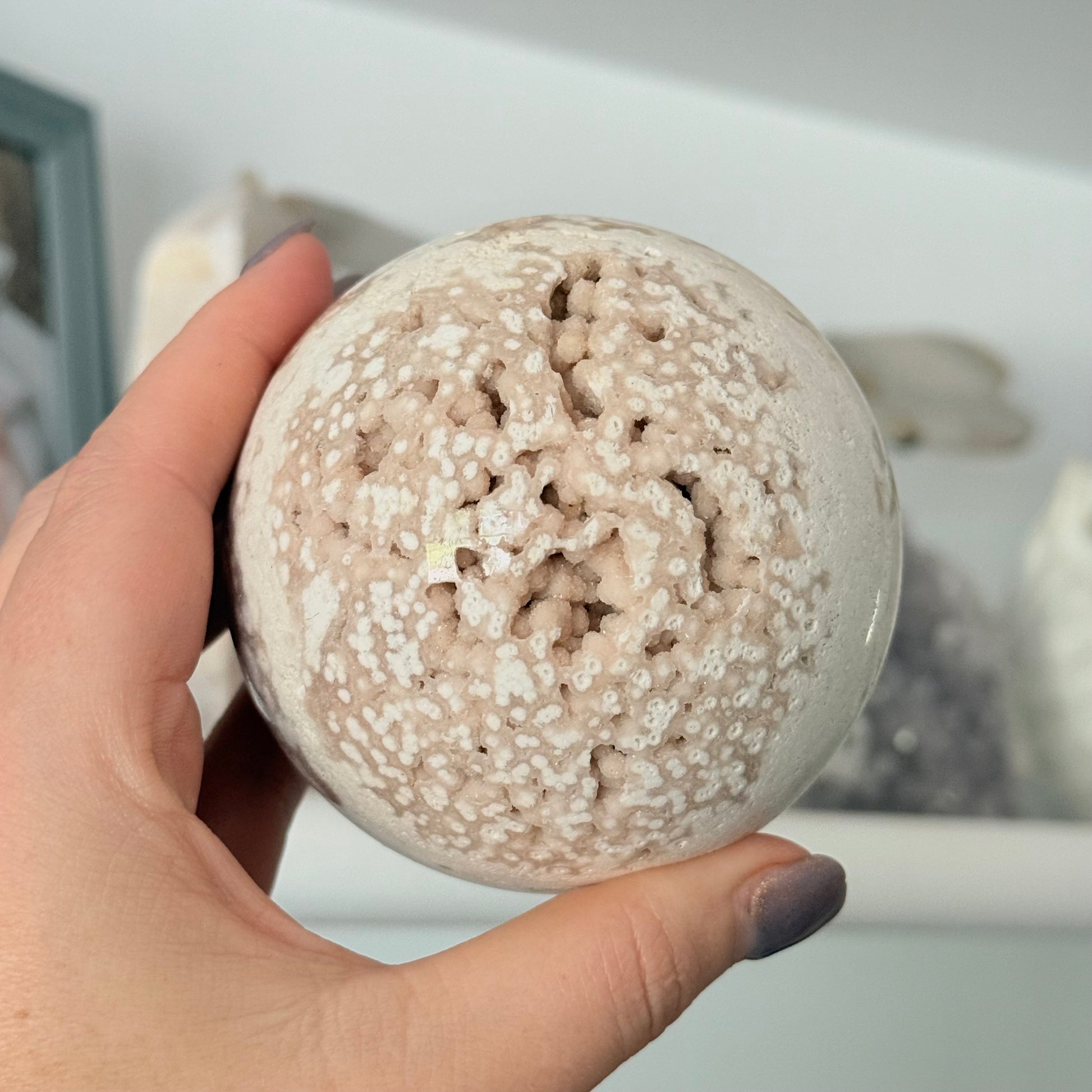 Pink Amethyst & Flower Agate Crystal Sugar Druzy Sphere