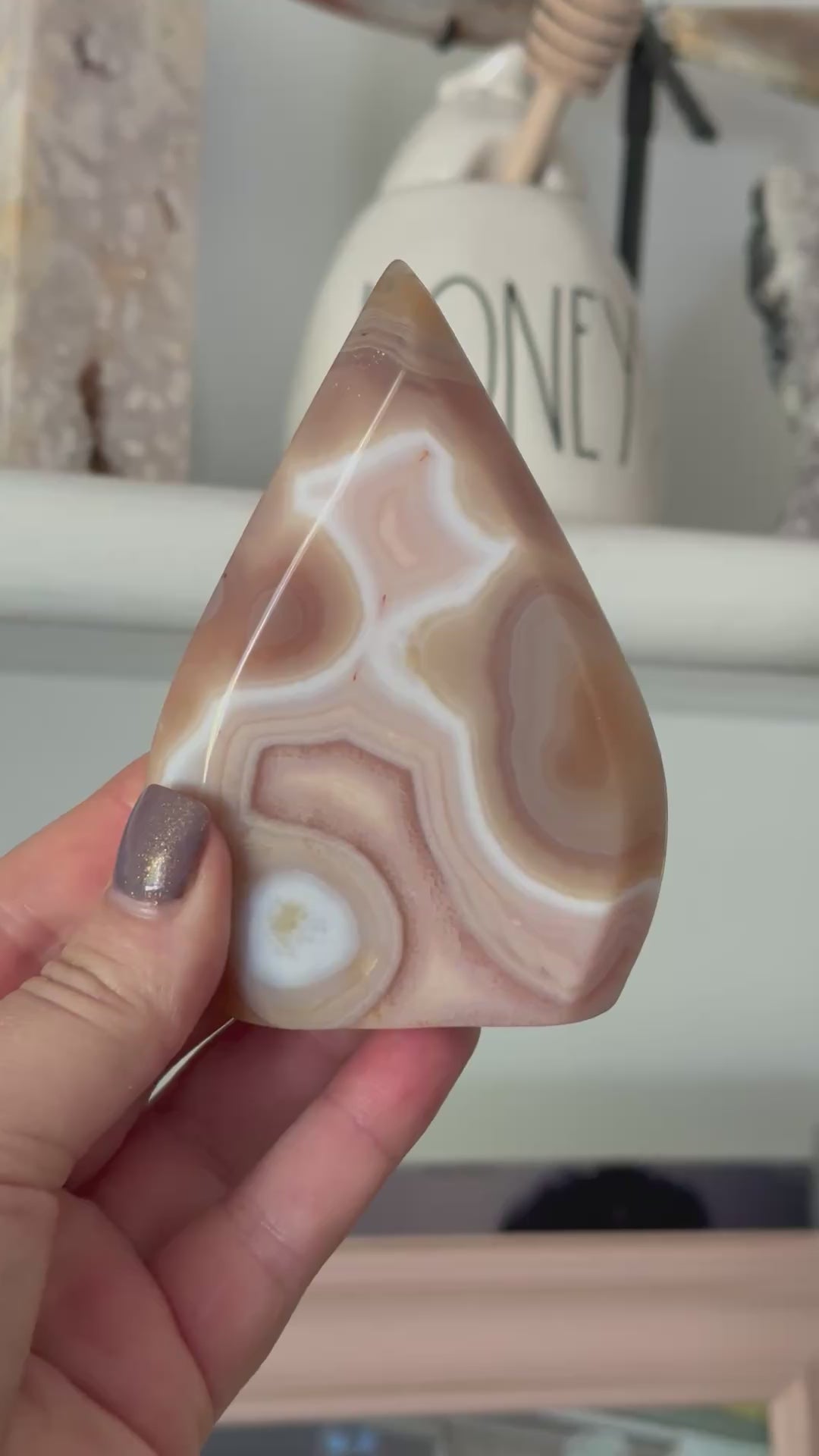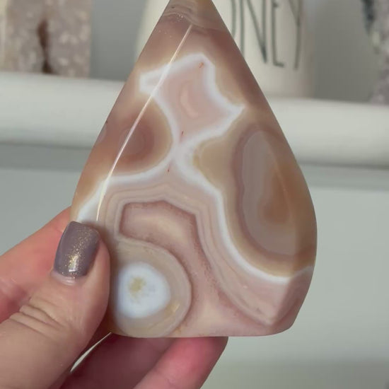 This one-of-a-kind crystal is a timeless gift from Gaia, celebrated for its grounding presence and captivating natural banding. Each piece of Agate carries unique patterns and soothing energy, making it as beautiful to display as it is meaningful to hold. Size: Coming Soon