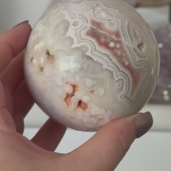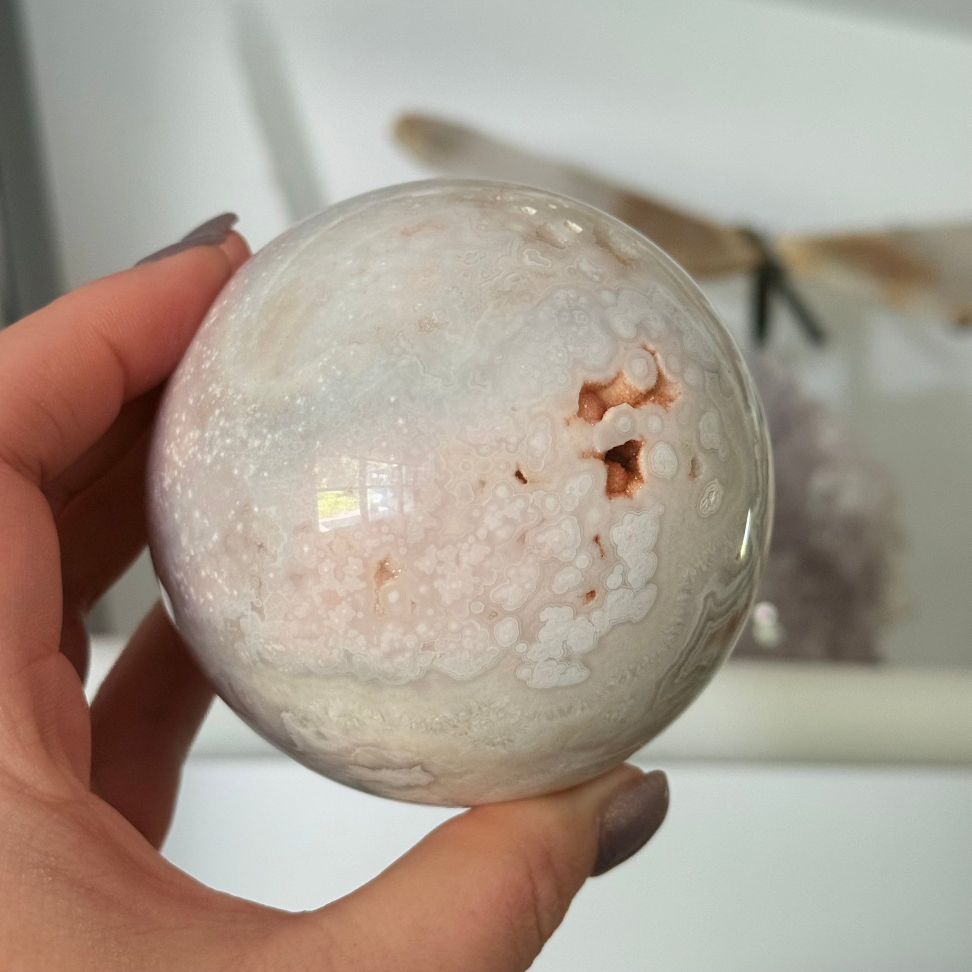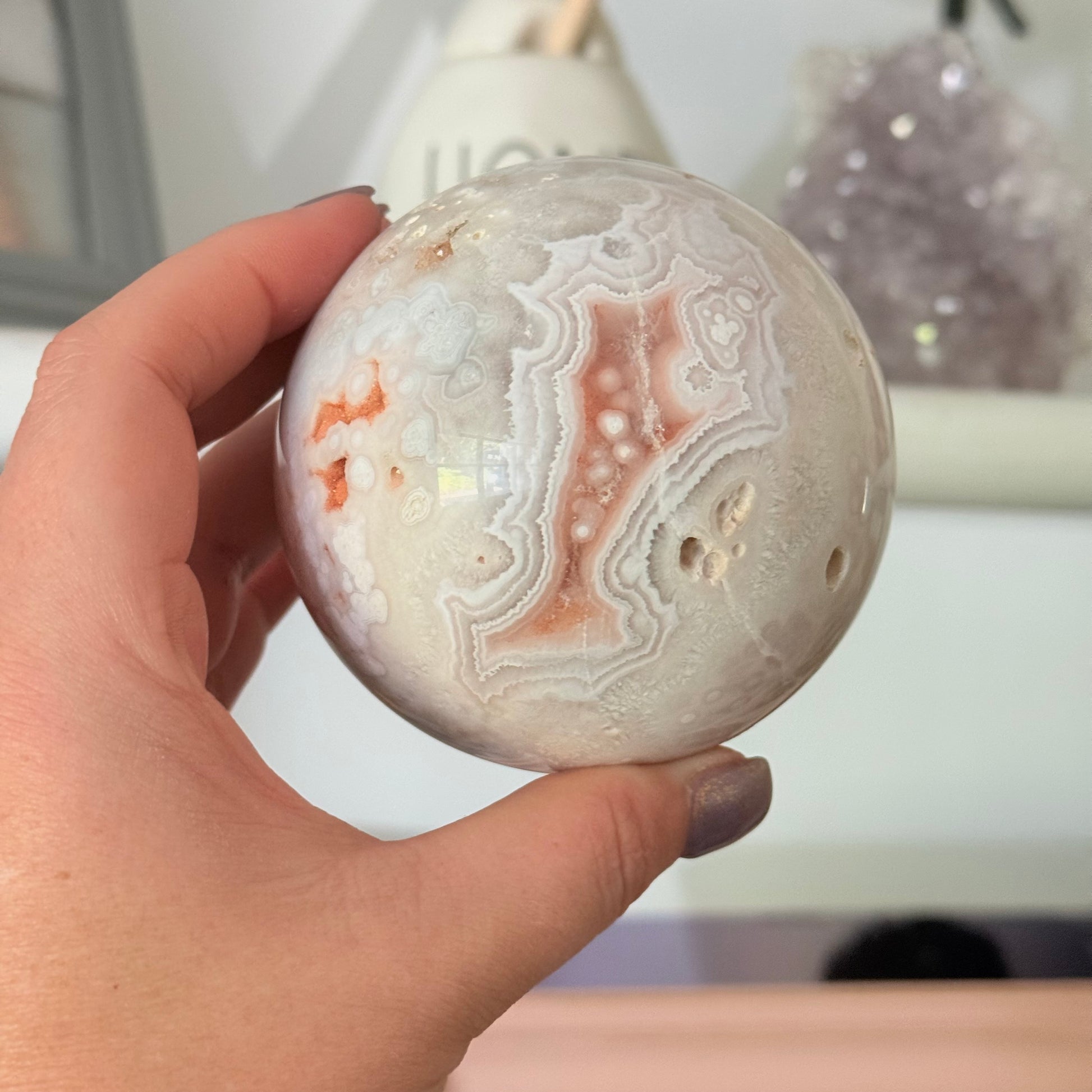 Pink Amethyst & Flower Agate Crystal Sugar Druzy Sphere