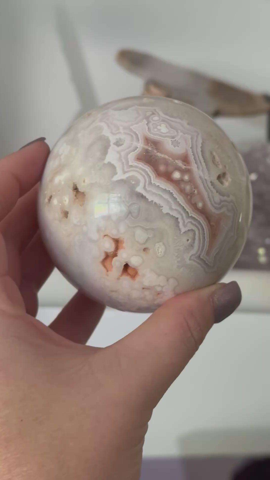 This crystal is admired for its peaceful, grounding nature. Flower Agate’s nurturing stability blends seamlessly with Pink Amethyst’s soft energy, offering a supportive companion during times of change or self-discovery.